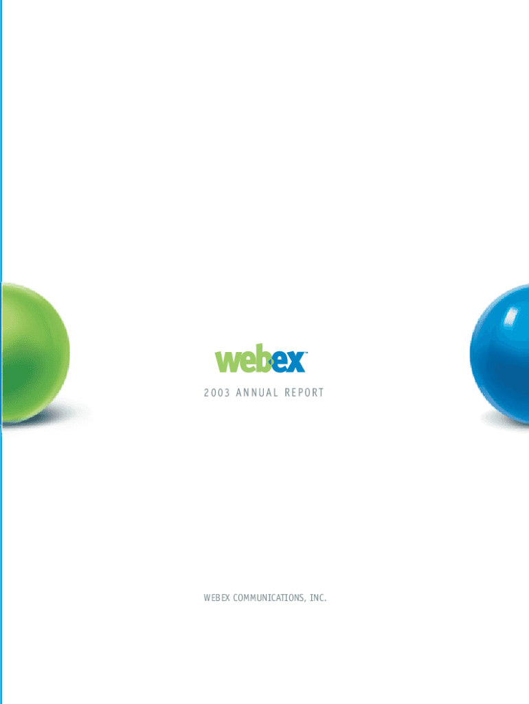 2 0 0 3 A N UA L R E P O RT WEBEX COMMUNICATIONS, INC.TO OUR STOCKHOLDERS2003 ANNUAL REPORT2003 was another successful year for WebEx. Entering the year we focused on the business processes required