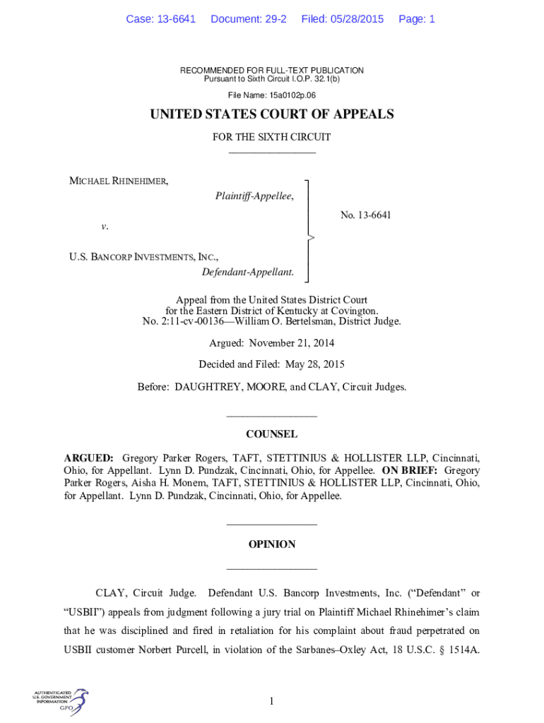 Case: 136641Document: 292Filed: 05/28/2015Page: 1RECOMMENDED FOR FULLEST PUBLICATION Pursuant to Sixth Circuit I.O.P. 32.1(b) File Name: 15a0102p.06UNITED STATES COURT OF APPEALS FOR THE SIXTH CIRCUIT