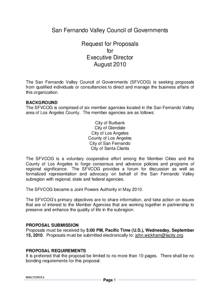 Get the free Request for Proposal-SFV COG-Executive Director.DOC - per lacity