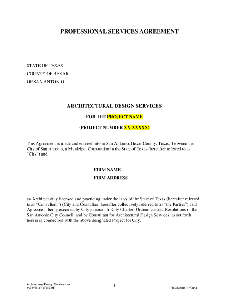Edit architect contract - final. Replace text, adding objects, rearranging pages, and more. Then select the Documents tab to combine, divide, lock or unlock the file.