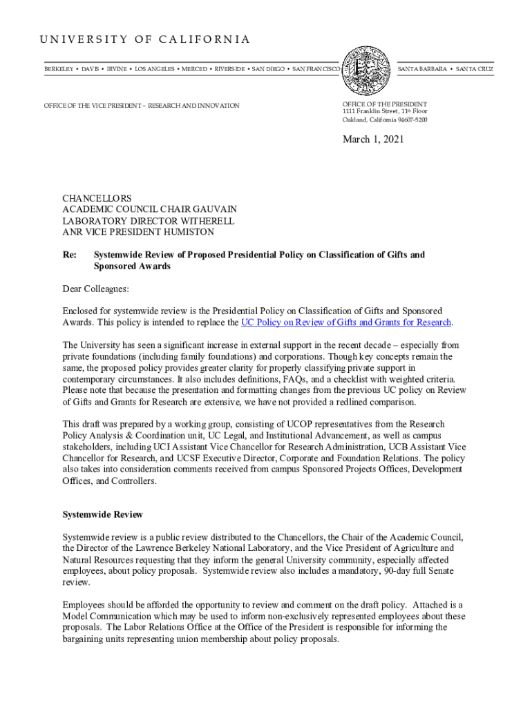UNIVERSITY OF CALIFORNIA BERKELEY DAVIS IRVINE LOS ANGELES MERCED RIVERSIDE SAN DIEGO SAN FRANCISCOOFFICE OF THE VICE PRESIDENT RESEARCH AND INNOVATIONSANTA BARBARA SANTA CRUZOFFICE OF THE PRE SILENT