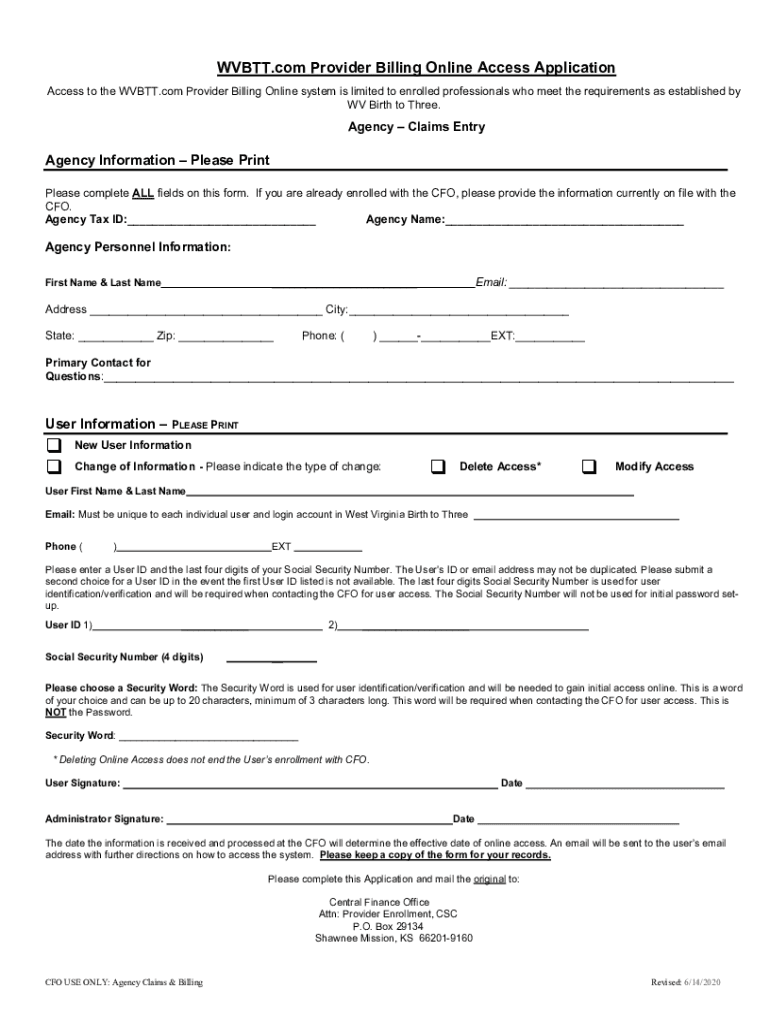 WVBTT.com Provider Billing Online Access Application Access to the WVBTT.com Provider Billing Online system is limited to enrolled professionals who meet the requirements as established by WV Birth