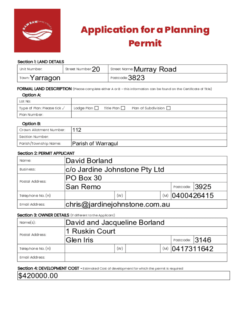 Get, Create, Make and Sign town planning permit applications