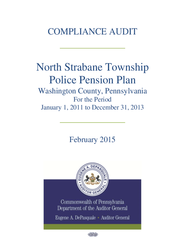 COMPLIANCE AUDIT___ North Streisand Township Police Pension Plan Washington County, Pennsylvania For the Period January 1, 2011, to December 31, 2013___ February 2015Board of Township Supervisors