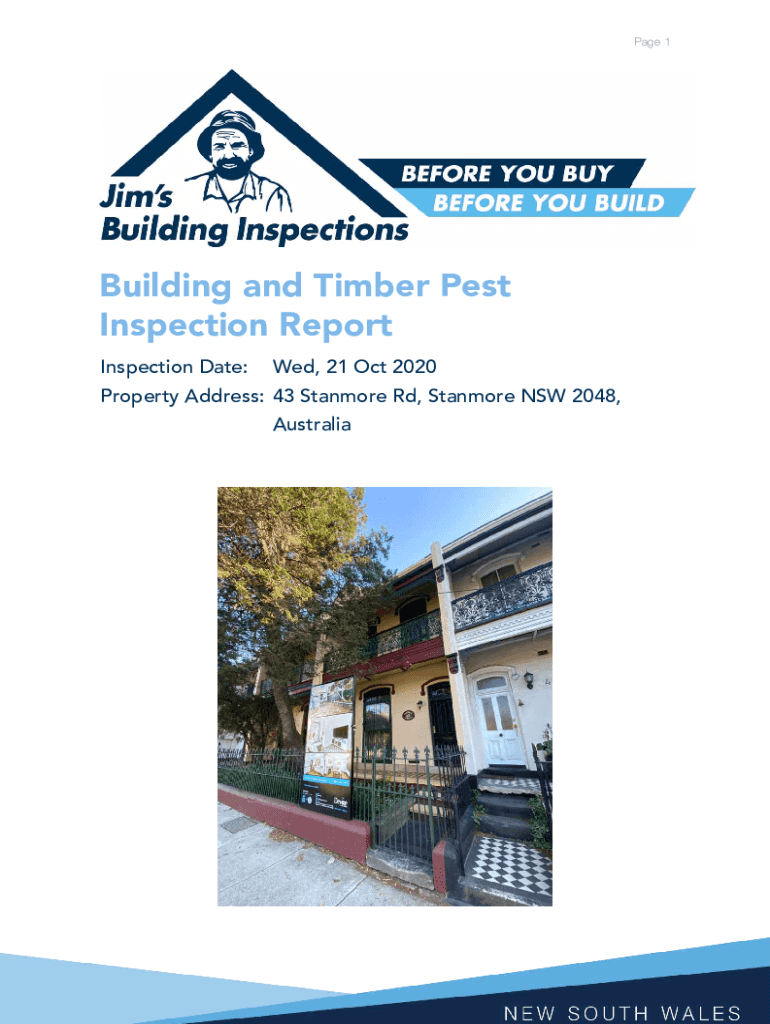Page 1Building and Timber Pest Inspection Report Inspection Date:Wed, 21 Oct 2020Property Address: 43 Stan more Rd, Stan more NSW 2048, Australia Page 2Contents The Parties Section Results of inspection