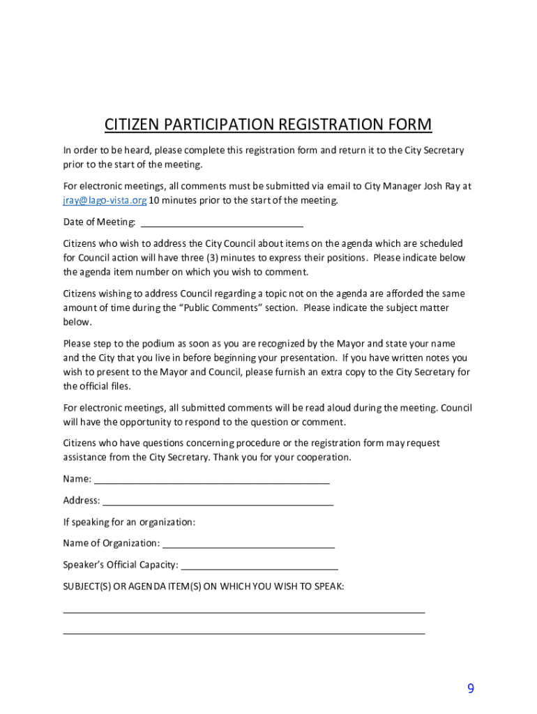 Get the free NOTICE IS HEREBY GIVEN - Lago Vista, Texas