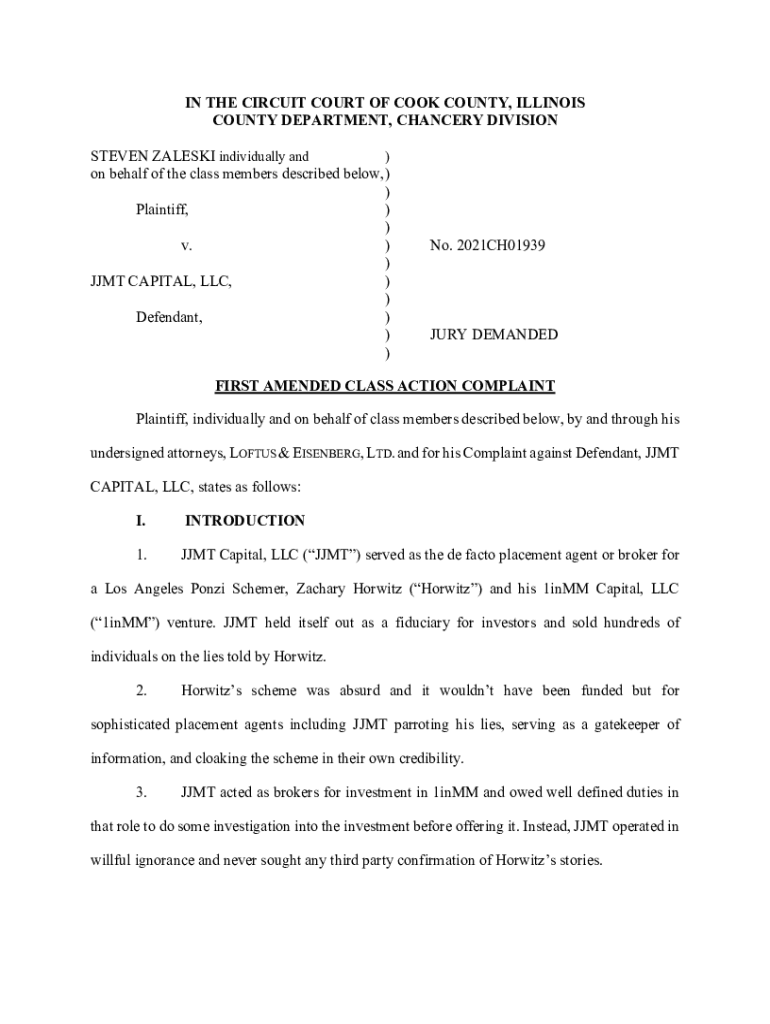 IN THE CIRCUIT COURT OF COOK COUNTY, ILLINOIS COUNTY DEPARTMENT, CHANCERY DIVISION STEVEN MALES individually and) on behalf of the class members described below, ) ) Plaintiff, ) ) v.) ) JUST CAPITAL,