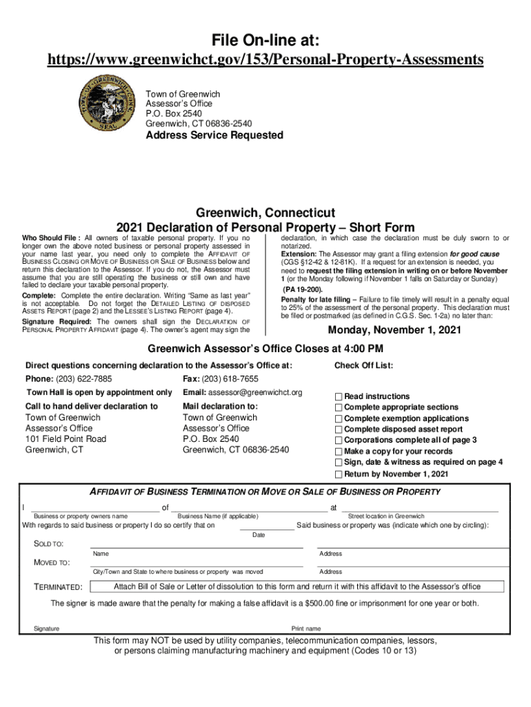 Get the free Personal Property Declaration Affidavit - greenwichct.gov
