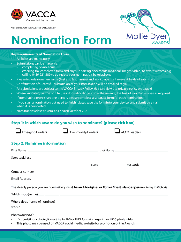 The information required on the nomination form - vaccaorg includes personal details of both the nominator and the nominee, reasons for the nomination, and any supporting documents.
