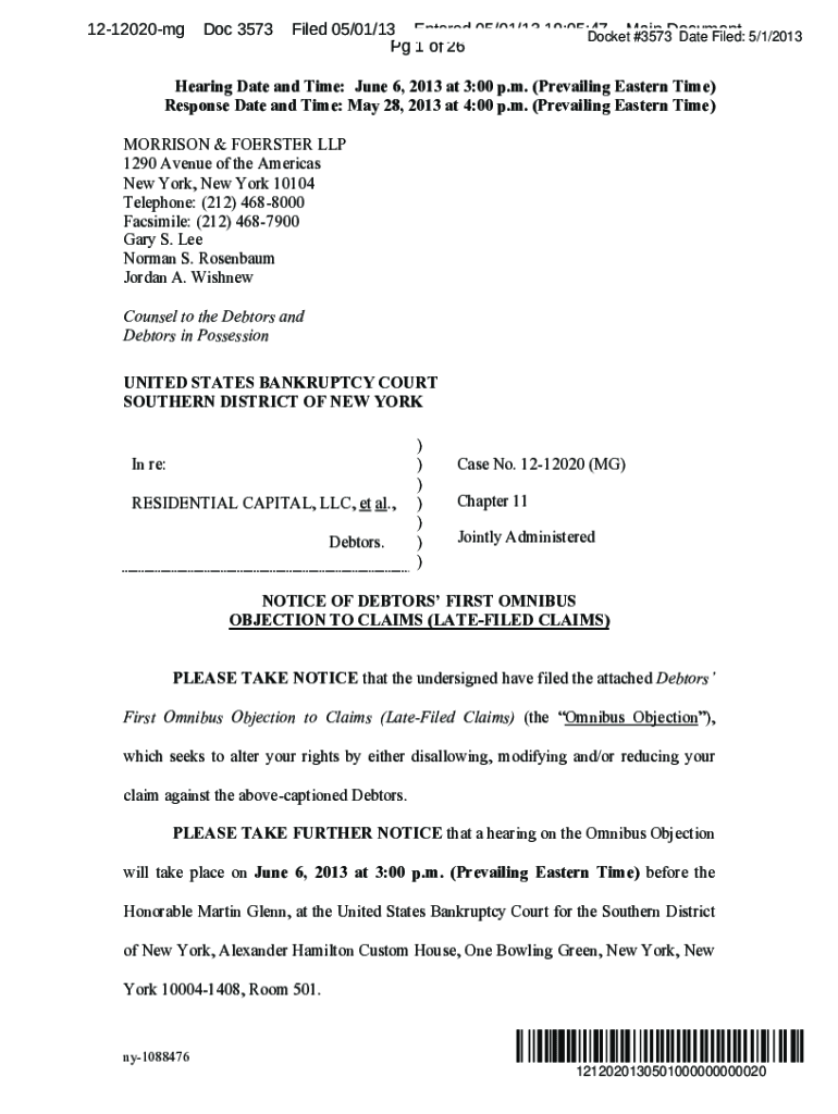 Get the free NEW YORK-ResCap - Form omni claim objection - late filed-1081242.DOC