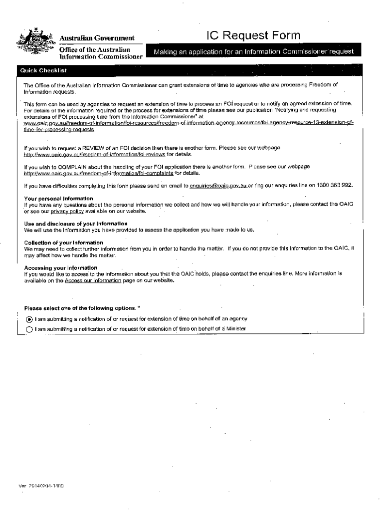 Australian Government Office of the Australian Information Commissioner Request Form Making an application for an Information Commissioner requestQuick Checklist The Office of the Australian Information