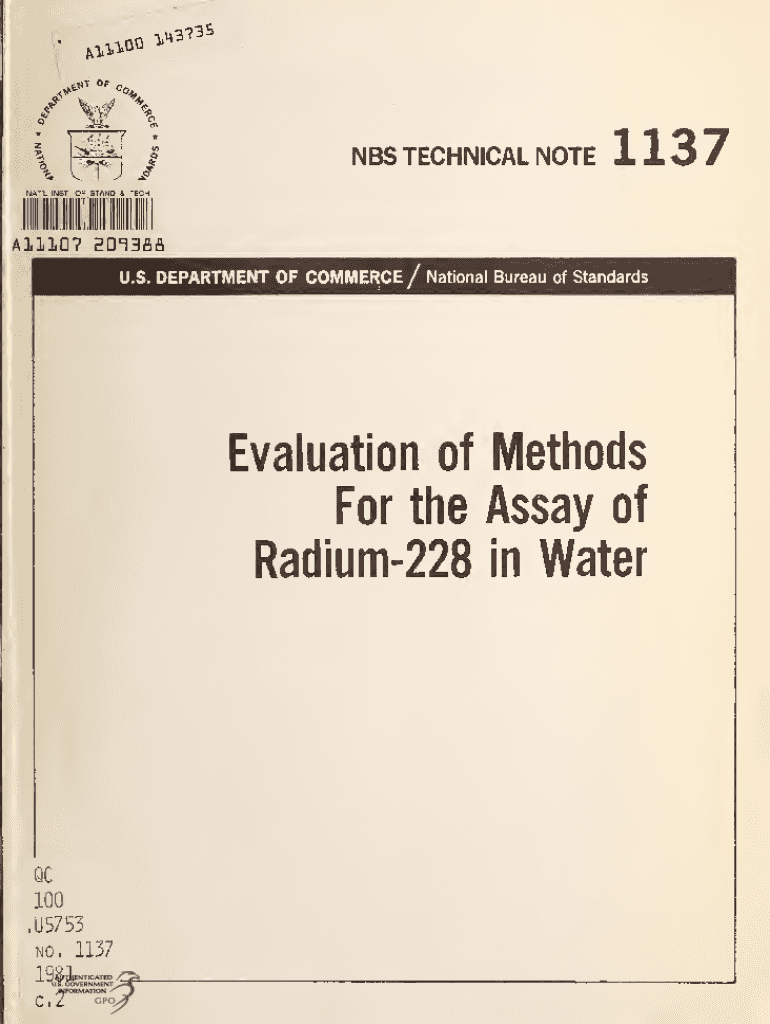 ^h3\'?35 .1.1.×0^ ^^^\'^^ ^ to, i *V1y/NBS TECHNICAL NOTE1137NATL INST OF STAND & TECHA111D7ED×3flfl U.S.DEPARTMENT OF COMMERCE/National Bureau of StandardsEvaluation of Methods For the Assay ofRadium228QC100.