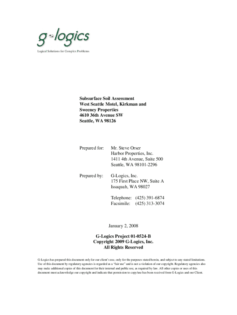 Logical Solutions for Complex ProblemsSubsurface Soil Assessment West Seattle Motel, Kirkman and Sweeney Properties 4610 36th Avenue SW Seattle, WA 98126Prepared for:Mr. Steve Order Harbor Properties,