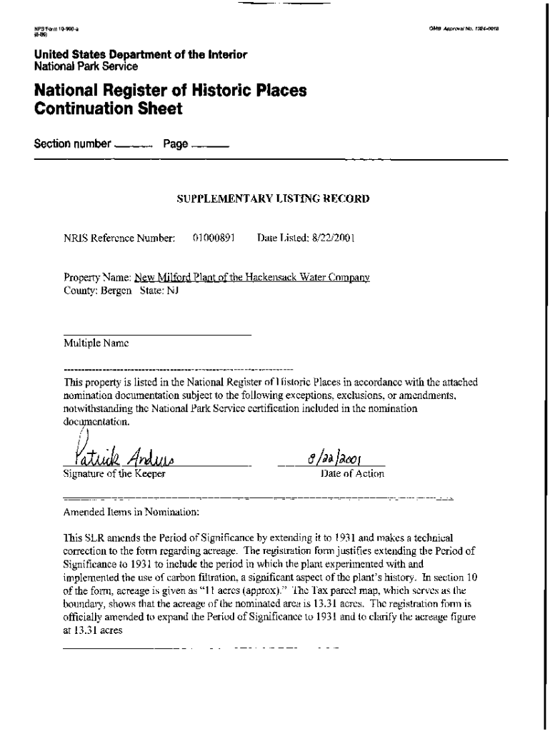 NPS Form 10900a (886)OMB Approval No. 10210018United States Department of the Interior National Park ServiceNational Register of Historic Places Continuation Sheet Section number Page SUPPLEMENTARY