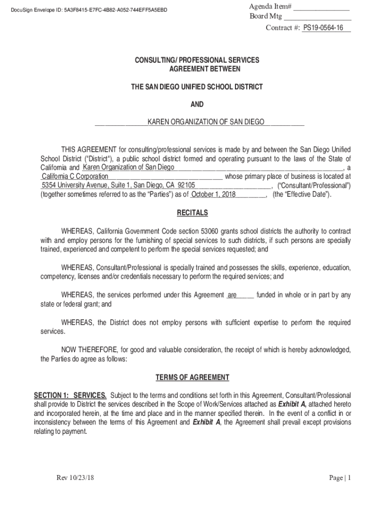 $HAD, WHPBBBBBBBBBBBBBBB %RDUG0WJBBBBBBBBBBBBBBBBBBDocuSign Envelope ID: 5A3F8415E7FC4B82A052744EFF5A5EBDPS19056416 Contract #: ___CONSULTING/ PROFESSIONAL SERVICES AGREEMENT BETWEEN THE SAN DIEGO