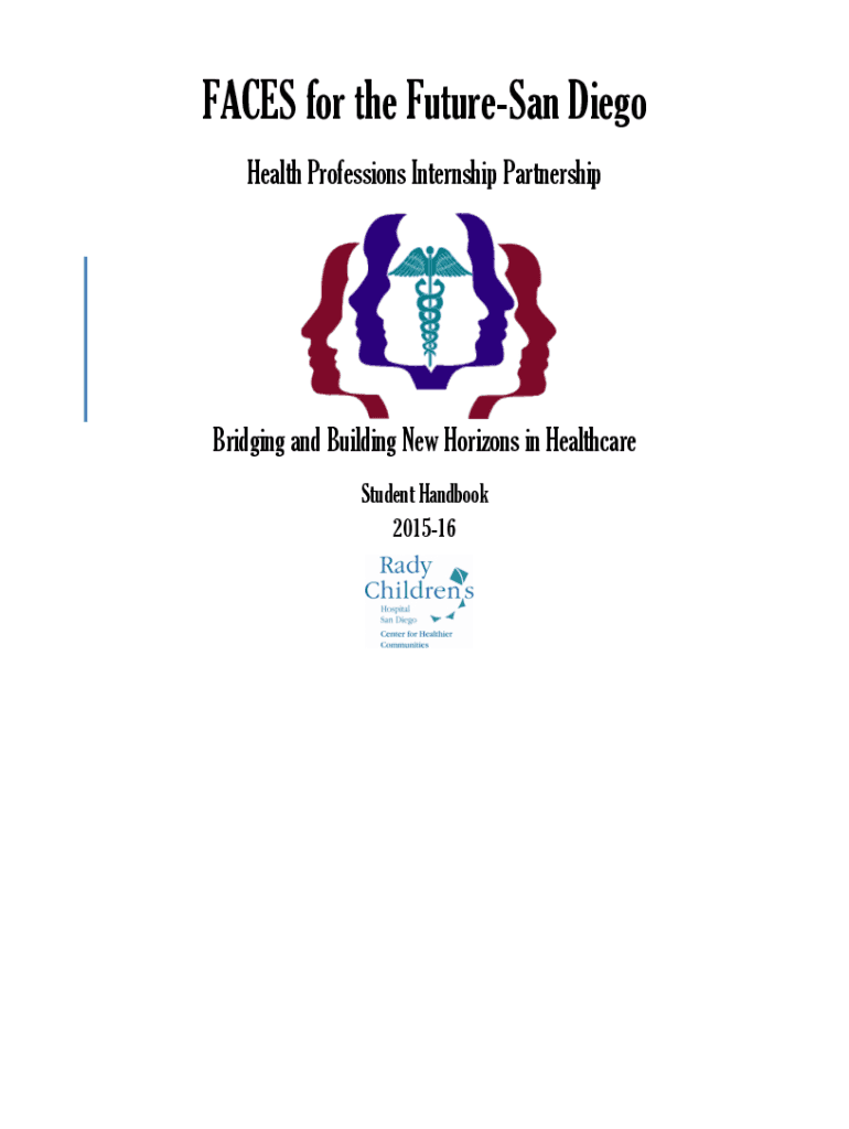 FACES for the Future San Diego Health Professions Internship PartnershipBridging and Building New Horizons in Healthcare Student Handbook 201516Welcome to Ready Children's Hospital San Diego (RCH