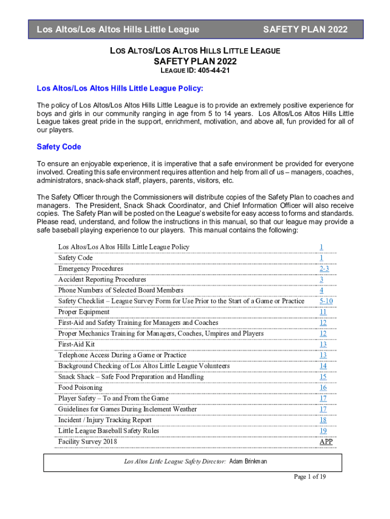 Los Altos/Los Altos Hills Little LeagueSAFETY PLAN 2022LOS ALTOS/LOS ALTOS HILLS LITTLE LEAGUE SAFETY PLAN 2022 LEAGUE ID: 4054421Los Altos/Los Altos Hills Little League Policy: The policy of Los