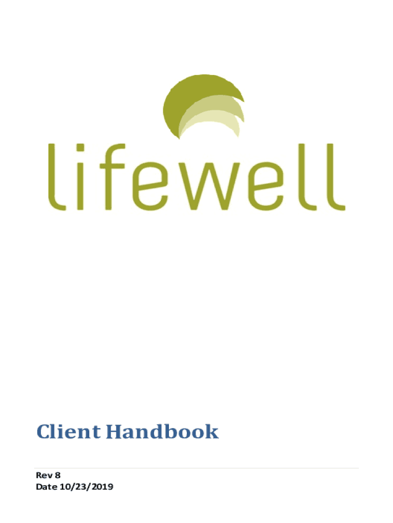 Client Handbook Rev 8 Date 10/23/2019ABOUT US Life well is a nonprofit behavioral healthcare agency providing treatment, services and support for low income members diagnosed with serious mental illness