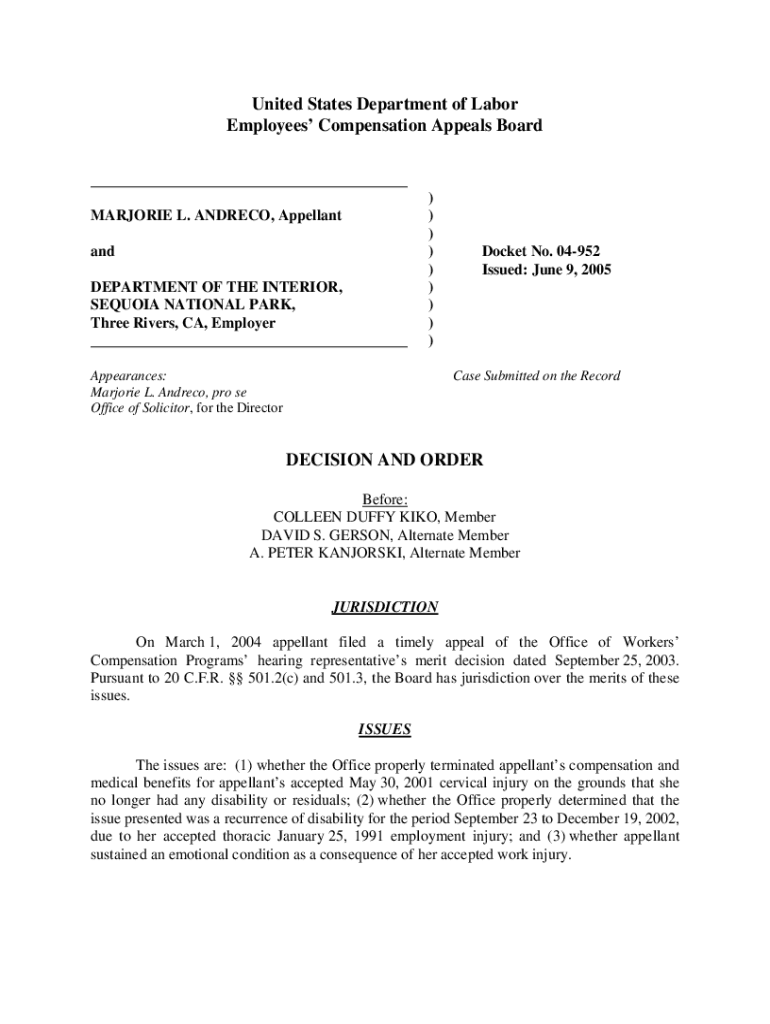 Get the free 04-0952: MARJORIE L. ANDRECO and DEPARTMENT OF TH...
