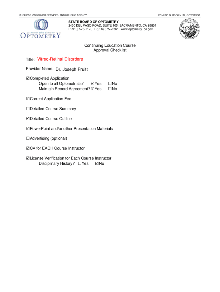 BUSINESS, CONSUMER SERVICES, AND HOUSING AGENCY0EDMUND G. BROWN JR., GOVERNORATE BOARD OF OPTOMETRY 2450 DEL PASS ROAD, SUITE 105, SACRAMENTO, CA 95834 P (916) 5757170 F (916) 5757292 www.optometry