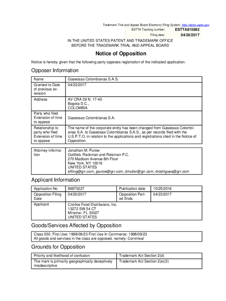 Get the free Notice of Opposition to COLOMBIANA FINAL.docx