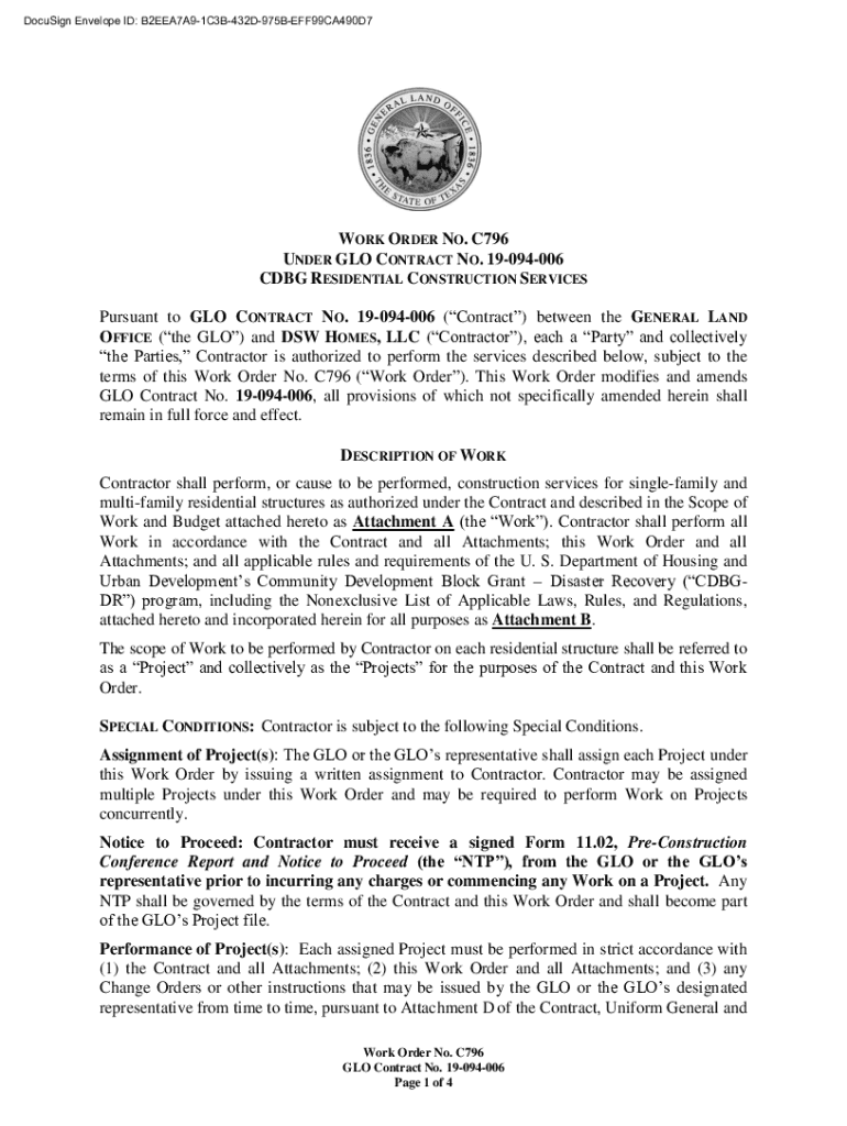 Get the free WORK ORDER NO. C796 UNDER GLO CONTRACT NO. 19-094 ...