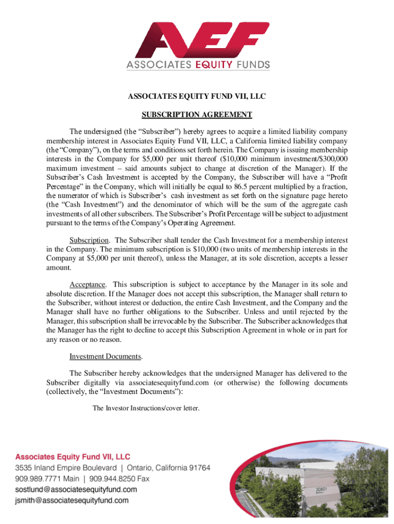 ASSOCIATES EQUITY FUND VII, LLC SUBSCRIPTION AGREEMENT The undersigned (the Subscriber) hereby agrees to acquire a limited liability company membership interest in Associates Equity Fund VII, LLC,