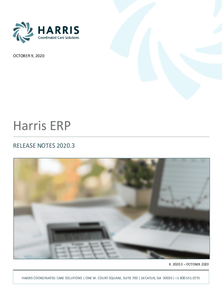 OCTOBER 9, 2020Harris ERP RELEASE NOTES 2020.3R. 2020.3 OCTOBER 2020 HARRIS COORDINATED CARE SOLUTIONS | ONE W. COURT SQUARE, SUITE 700 | DECATUR, GA 30030 | +1 800.551.0775The names used in this
