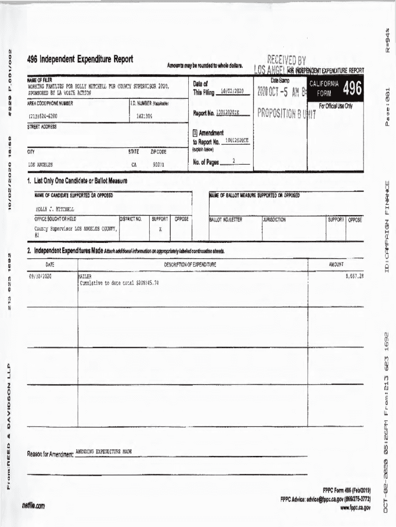 En II Cl::\'.all 0 0496 Independent Expenditure Report0 0 0.NAME OF FILER.....ai all tllDAmounts may be rounded to whole dollars.(213)6246200This Longstreet ADDRESS00.CITY0LOS ANGELES0....(J2020 OCT