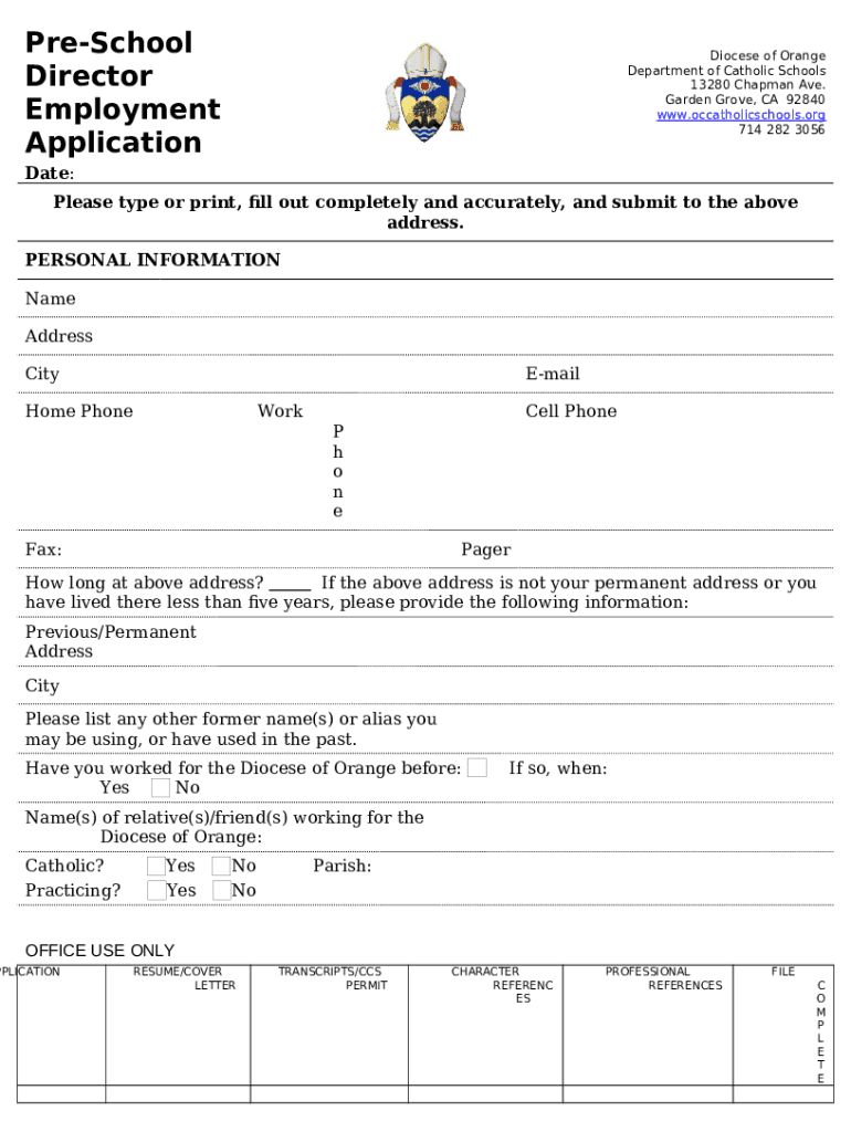 Instructions for the form TEACHER EMPLOYMENT APPLICATION