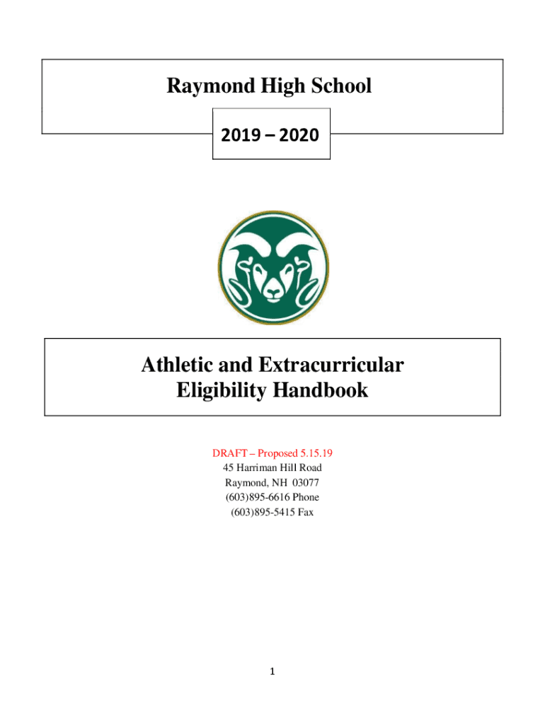 Raymond High School 2019 2020Athletic and Extracurricular Eligibility Handbook DRAFT Proposed 5.15.19 45 Harriman Hill Road Raymond, NH 03077 (603)8956616 Phone (603)8955415 Fax1ATHLETIC & EXTRACURRICULAR