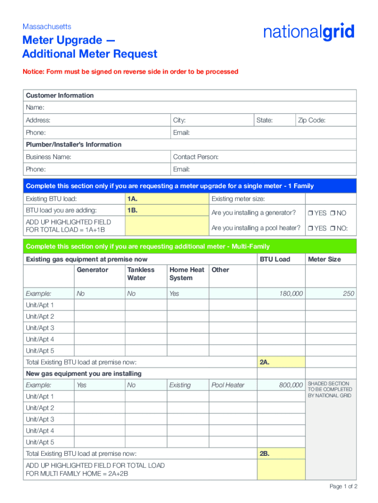 MassachusettsMeter Upgrade Additional Meter Request Notice: Form must be signed on reverse side in order to be processed Customer Information Name: Address:City:Phone:Email:State:Zip Code:Plumber/Installers