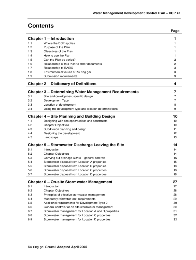 Water Management Development Control Plan DCP 47Contents PageChapter 1 Introduction11.1 1.2 1.3 1.4 1.5 1.6 1.7 1.8 1.91 1 1 1 2 2 3 3 3Where the DCP applies Purpose of the Plan Objectives of the