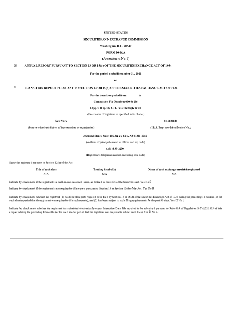 Get the free 10-K/A - 05/06/2022 - Copper Property CTL Pass Through Trust
