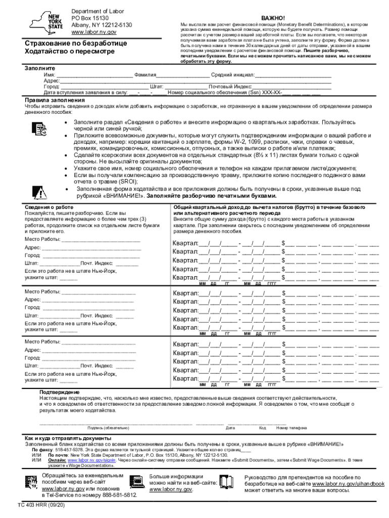 Department of Labor PO Box 15130 Albany, NY 122125130 www.labor.ny.gov! (Monetary Benefit Determinations),