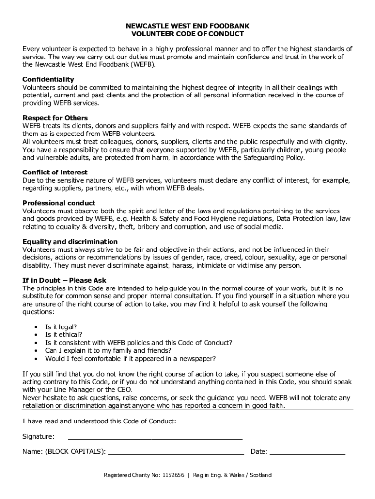 Fill out your newcastlewestendfoodbankorgukwp-contentvolunteer code of conduct online with pdfFiller!