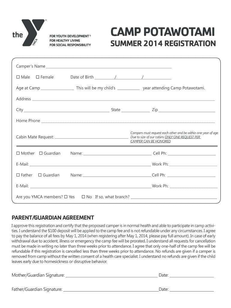 Camp Potawotami - Fwymca is not the form you're looking for?Search for another form here.