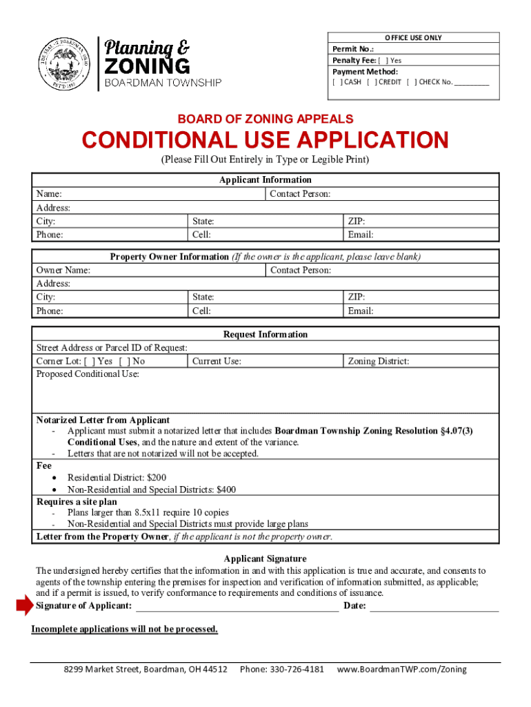 OH Conditional Use Application - Boardman Township 2021-2026 free printable template