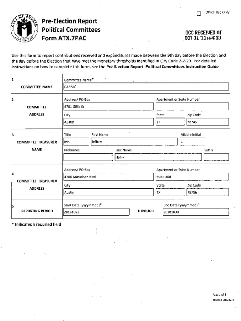 Get the free Pre-Election Report Political Committees Form ATX