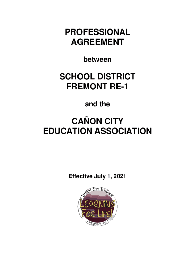 PROFESSIONAL AGREEMENT betweenSCHOOL DISTRICT FREMONT RE1 and thereon CITY EDUCATION ASSOCIATIONEffective July 1, 2021PROFESSIONAL NEGOTIATIONS AGREEMENT between SCHOOL DISTRICT FREMONT RE1 and the