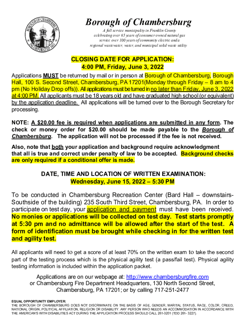 Get the free www.chambersburgfire.com wwwBorough of Chambersburg
