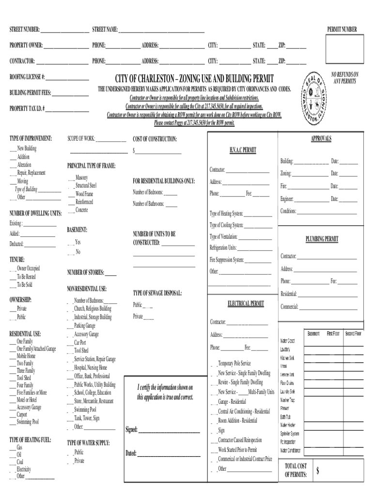 STREET NUMBER: ___ STREET NAME: ___PERMIT NUMBERPROPERTY OWNER: ___PHONE:___ ADDRESS: ___ CITY: ___ STATE: ___ZIP: ___CONTRACTOR: ___PHONE:___ ADDRESS: ___ CITY: ___ STATE: ___ZIP: ___ NO REFUNDS