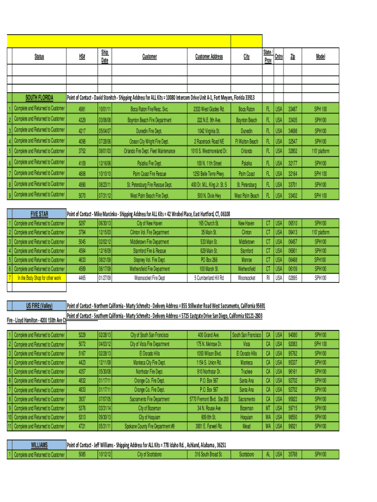 StatusSOUTH FLORID AHS×Ship DateCustomerCustomer AddressCityState / Entry ProvZipModelPoint of Contact David Stitch Shipping Address for ALL Kits 10080 Intercom Drive Unit A1, Fort Meyers, Florida