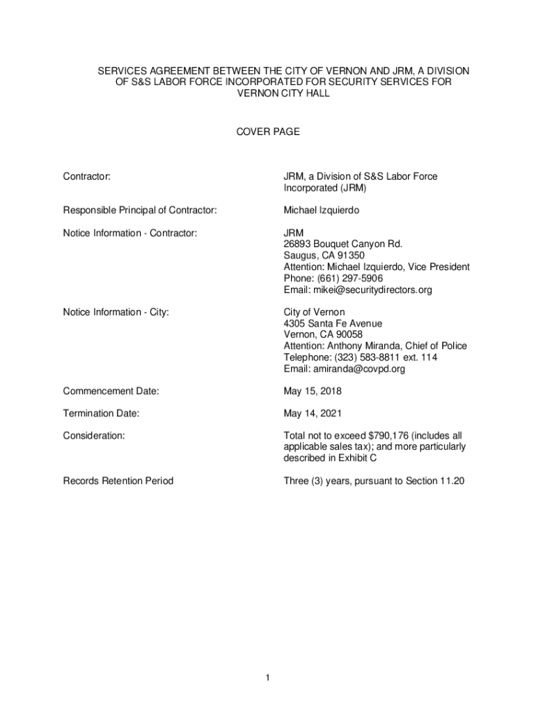 Get the free SERVICES AGREEMENT BETWEEN THE CITY OF VERNON AND JRM, A ...
