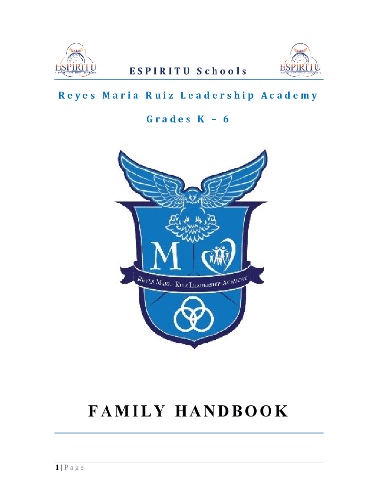 SPIRIT Schools Reyes Maria Ruiz Leadership Academy Grades K 6FAMILY HANDBOOK 1×PageFamily Handbook: Table of Contents ContentsFamily Handbook: Table of Contents .................................................................................