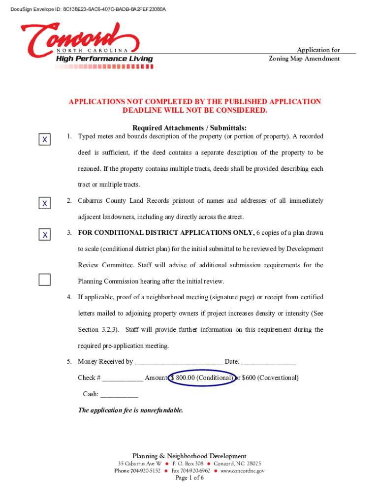 How to fill out NC Concord Application for Zoning Map Amendment