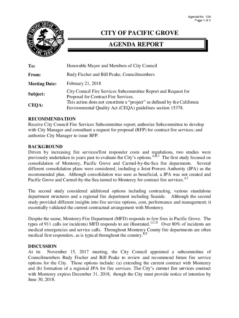 Get the free Agenda No. 12D Page 1 of 4 CITY OF PACIFIC GROVE 300 ...