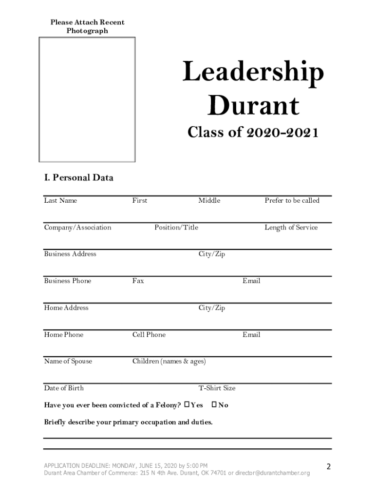 OK Durant Area Chamber of Commerce Leadership Durant Form Versions