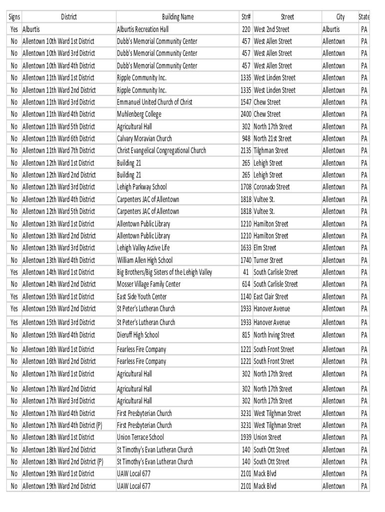 Signs Yes No No No No No No No No No No No No No No No No No No No Yes No Yes YesDistrictBuilding Name Albums Recreation Hall Dub\'s Memorial Community Center Dub\'s Memorial Community Center Dub\'s