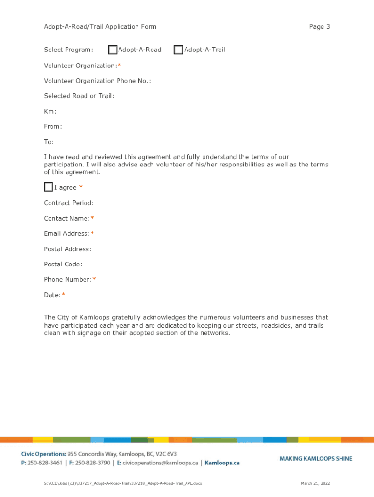 BALLOONS COMMUNITY ENHANCEMENT PARTNERSHIP PROGRAM ADOPTAROAD/TRAIL APPLICATION FORM The AdoptARoad/Trail program provides private organizations, clubs, and citizens the opportunity to assist the